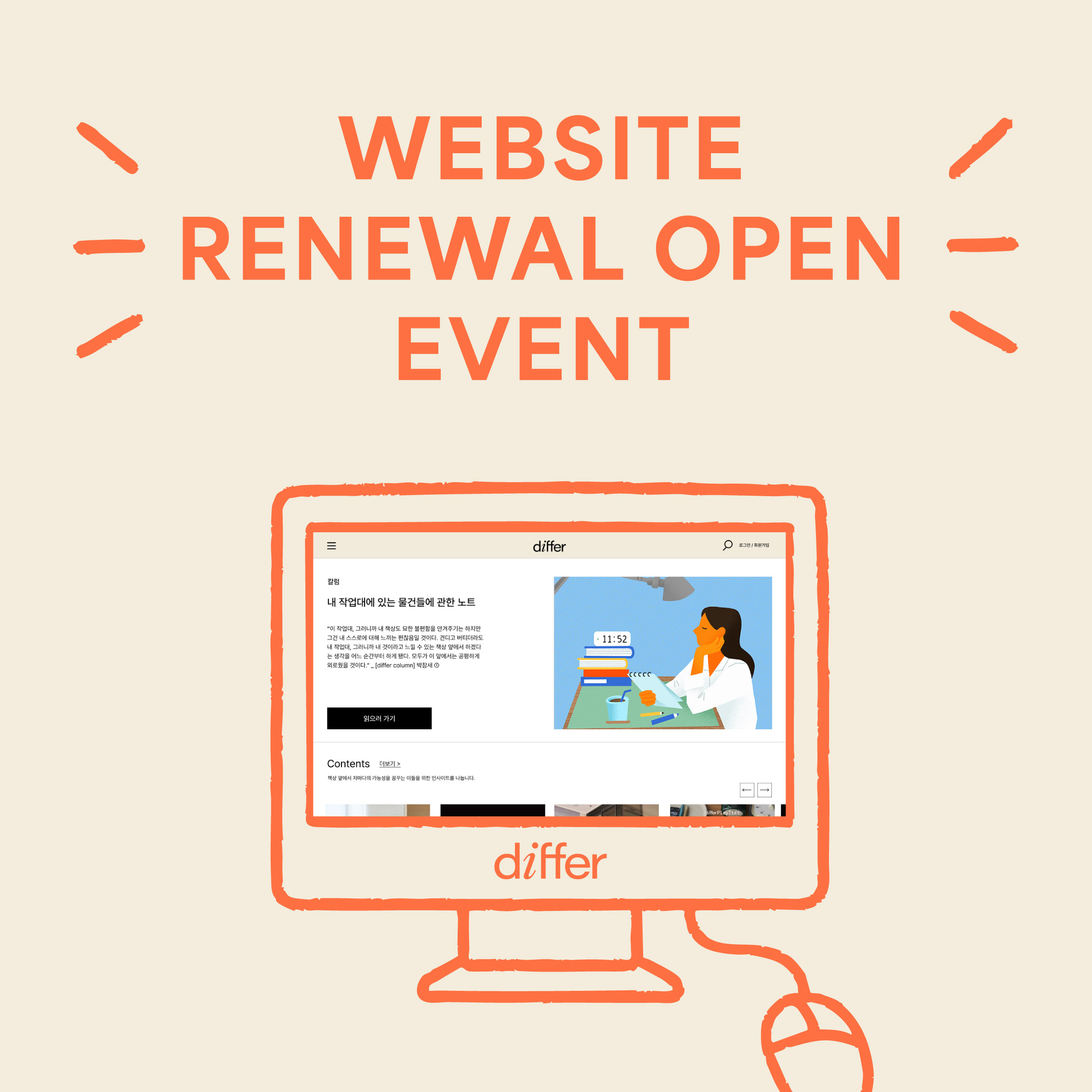 새롭게 단장한 differ 웹사이트를 구경하며 리뉴얼 오픈을 함께 축하해 주세요 🥳